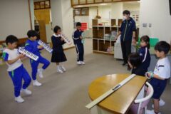運動会に向けて 利賀っ子Diary 2024.05.02 5限に団体競技「玉入れ」の練習を体育館で行いました。競技責任者の生徒から、「玉入れ」のルールや入退場の仕方について説明がありました。その後、入場から退場まで通し練習を行いました。