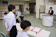 第2回マルチ交流会 利賀っ子Diary 2024.06.24 「第2回マルチ交流会」を行い、前期課程児童と後期課程生徒が交流しました。今回は、2人ペアを組み、新聞ゲームを行いました。最後まで2人で立っていられるよう相談してから行っており、それぞれのペアの工夫が見られました。前期課程児童と後期課程生徒のよい交流の場となったようです。