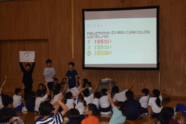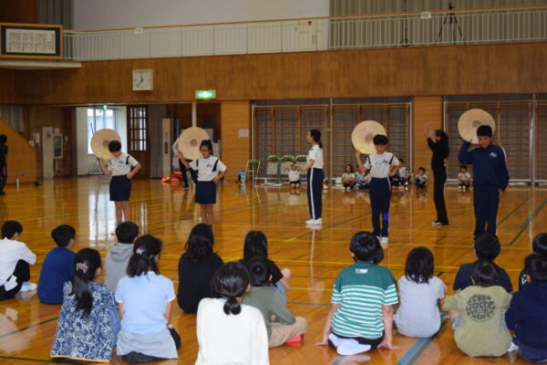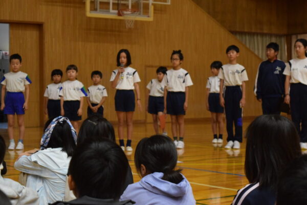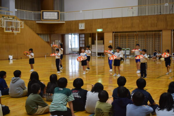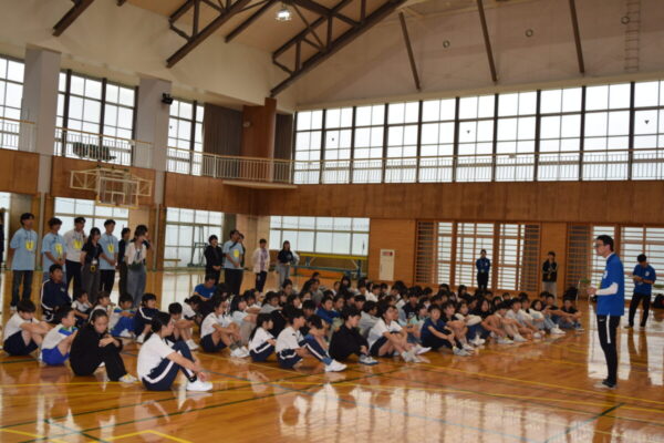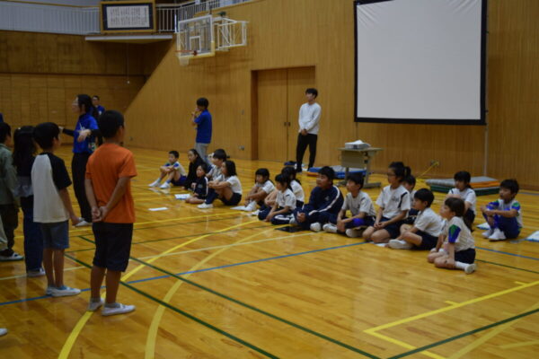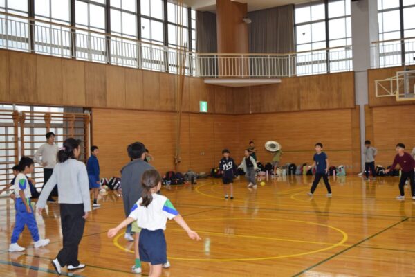 その後は体育館でドッジビーを行い、両校の児童が一緒になって元気いっぱいに体を動かしました。笑顔と歓声が体育館に広がり、すぐに打ち解けた様子が印象的でした。