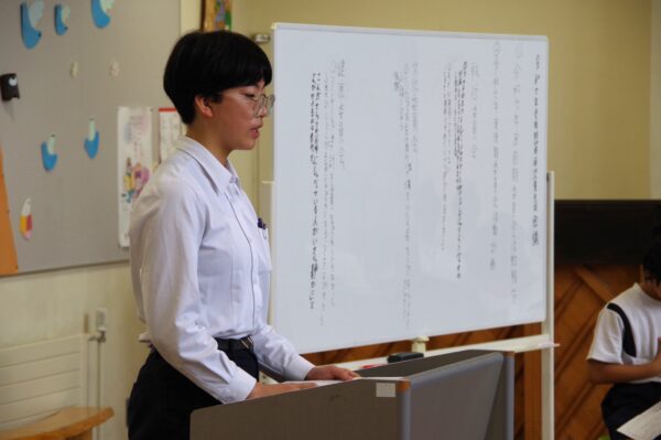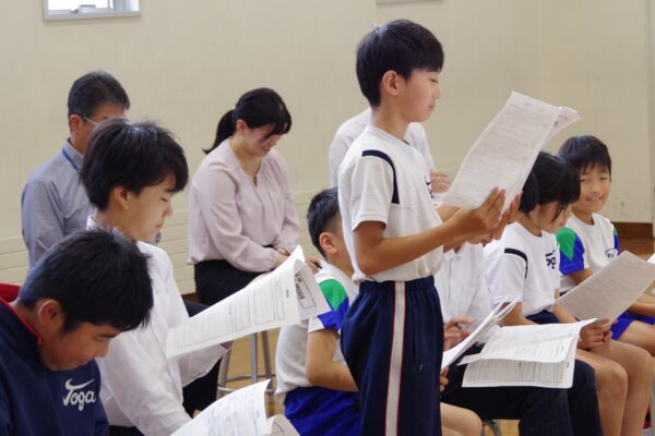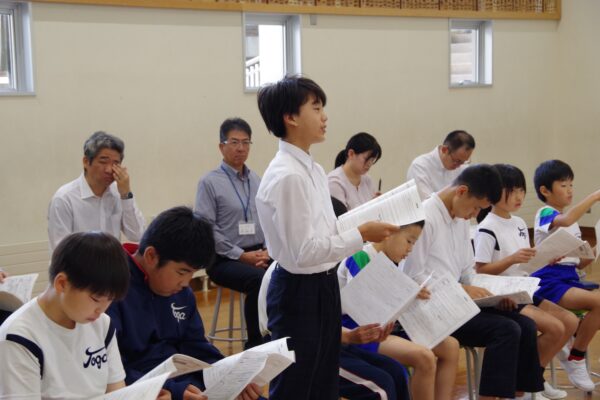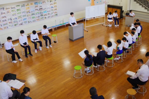 後期最初の児童生徒会議が開かれました。前期の活動をふり返りながら、後期の委員会の計画について話し合いました。執行委員会・文化委員会・健康委員会の発表には、たくさんの質問が出て、みんなで積極的に意見を交わす場面もありました。後期児童生徒会の活動が楽しみになる、前向きな会議となりました。