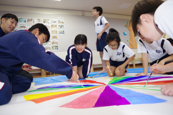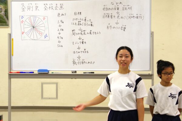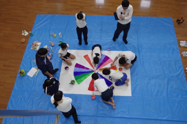 今年の全校企画のテーマは「 輝き ~照らそう26色 届けよう最高の笑顔~」です。このテーマには、「26人のそれぞれの個性や思いを色にたとえて、みんなで協力しながら最高の笑顔で輝きたい」という願いが込められています。一人ひとりの“色”が集まって一つの大きな光になるよう、みんなで力を合わせて金剛際をつくり上げていきます。