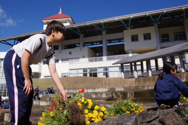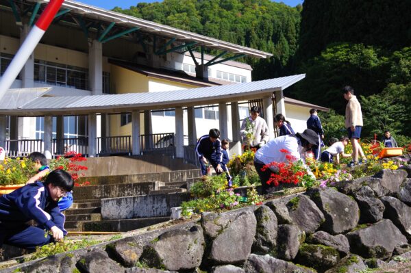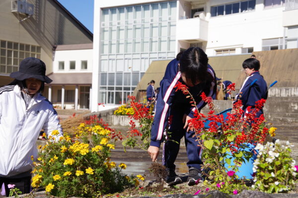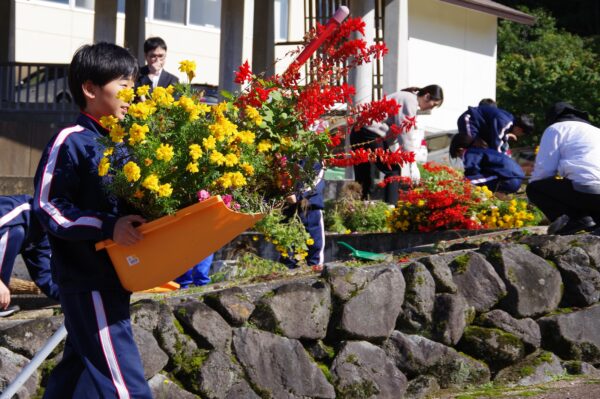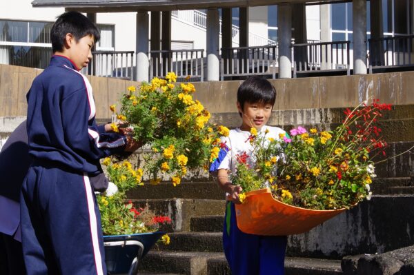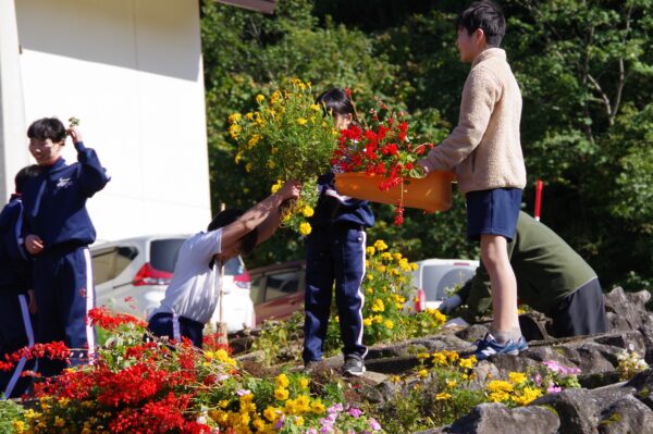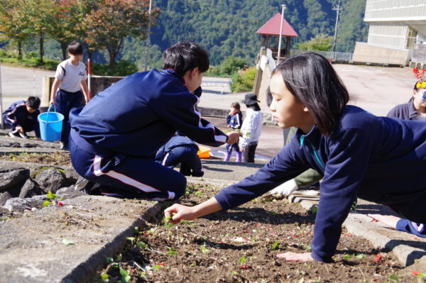 花壇整備 10月23日 利賀っ子Diary 2025.10.24 文化委員会の主催で、みんなで花壇の花苗を抜く作業をしました。秋晴れの空のもとでの活動はとても爽やかで、自然と笑顔があふれます。作業を通して、仲間と一緒に取り組む楽しさや、協力することの大切さを改めて実感できる、そんなひとときになりました。