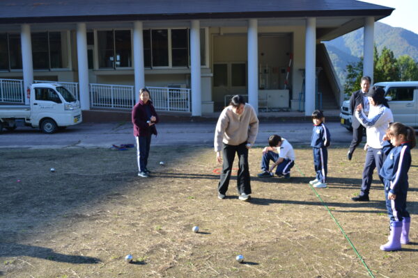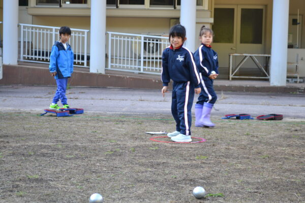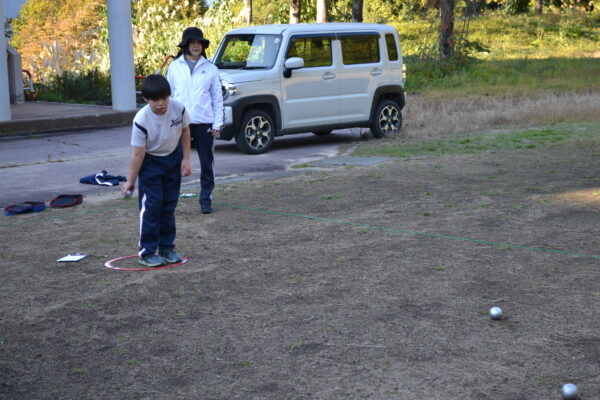 クラブ(ペタンク体験) 10月30日 利賀っ子Diary 2025.11.05 前期課程のクラブで、ペタンク体験を行いました。 2回目の今日は、6チームに分かれて試合形式で行いました。 ペタンクのルールを学びながら、楽しんで活動しました。