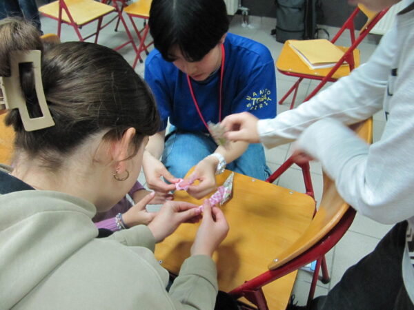 デルフィの学校を訪問し、プレゼンテーションや民謡の披露、折り紙などをして交流を深めました。