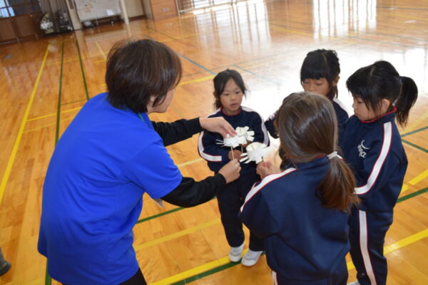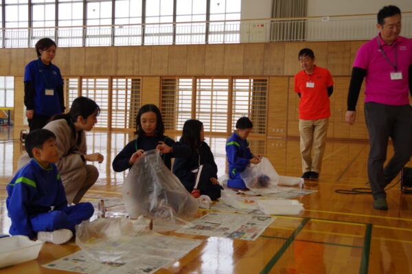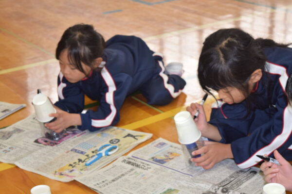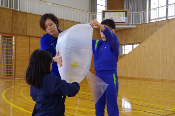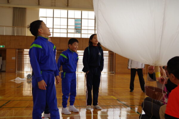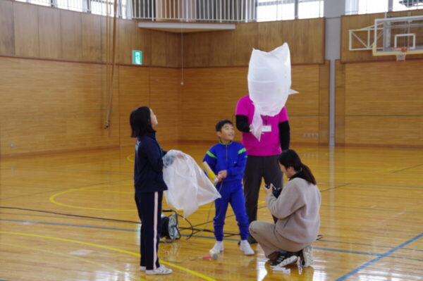 富山県総合教育センターから3名の先生方が来校され、理科実験の特別授業が行われました。低学年は「まわしてあそぼう」の活動を通して、身の回りの“回る”仕組みにふれました。4年生は「熱気球づくり」に挑戦し、空気の性質や熱の力を楽しく学びました。高学年は「化石模型作り」に取り組み、地層や化石の成り立ちについて理解を深めました。