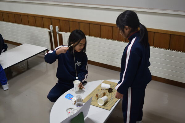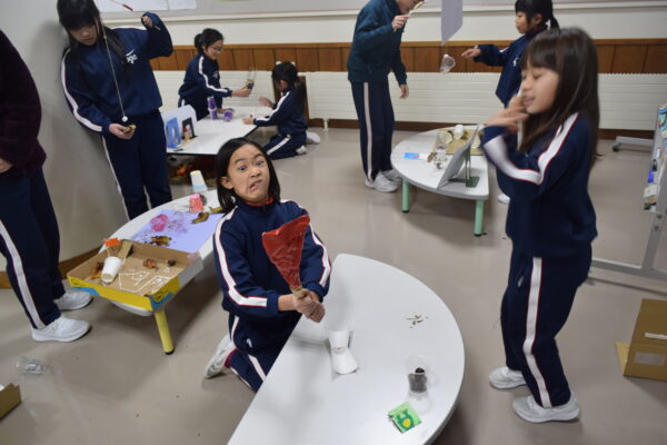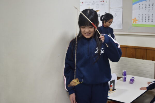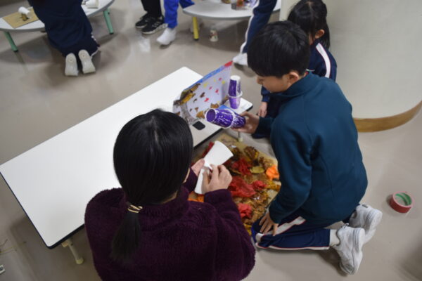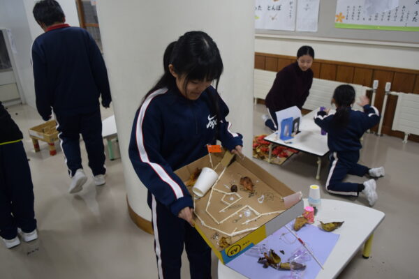 1・2年生は、生活科の時間に、秋のおもちゃづくりをしました。