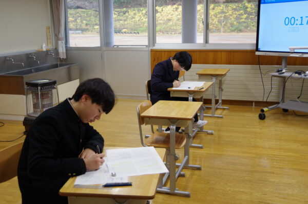 期末考査【後期課程】 11月28日 利賀っ子Diary 2025.12.01 後期課程の期末考査を実施しました。今回のテストを振り返り、自分の学習方法を見直して、冬休みの学習計画にしっかりと活かしていきましょう。