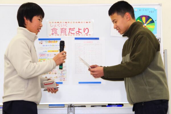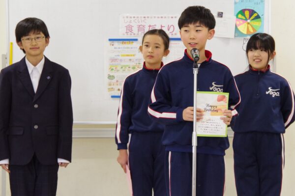11・12月の誕生会食 12月18日 利賀っ子Diary 2025.12.18 給食の時間に、文化委員会主催で11月と12月生まれの誕生会食を行いました。誕生者にちなんだクイズやインタビューで盛り上がり、笑顔あふれる楽しいひとときとなりました。