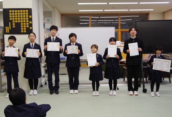 受賞披露 漢字大会・計算大会 満点賞  7名