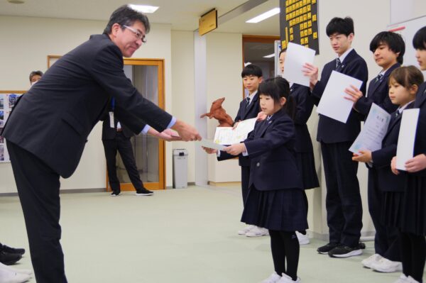 終業式では、校長先生から「冬休み中も健康に気を付け、日々の学びや活動を続けましょう」とのお話がありました。生徒指導主事の先生からは、休み中の安全についての注意がありました。受賞披露の後、各学級で学級指導を行い、2学期を締めくくりました。