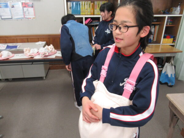 高学年 いのちの教育 1月28日 利賀っ子Diary 2026.01.29 市内の助産師さんと南砺市保健センターの保健師さんにお越しいただき、高学年を対象に「いのちの教育」を行いました。第二次性徴や妊娠の成立、胎児の成長などについて、専門的な立場から分かりやすくお話しいただき、これから成長していくうえで大切なことを学びました。 また、妊婦体験を通して命を育むことの大変さや尊さを実感し、大切に育ててくれた家族への感謝の気持ちをもつことができました。