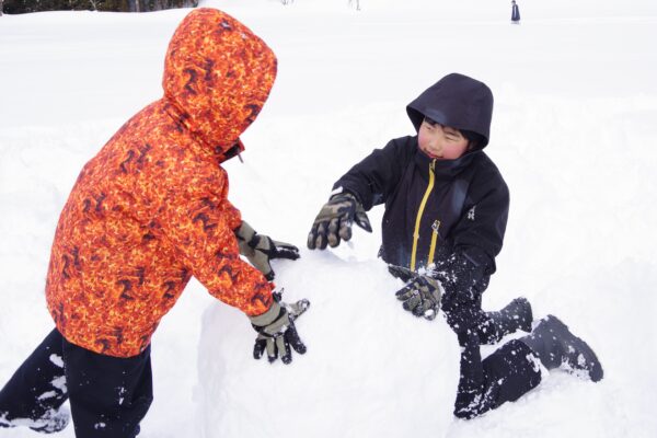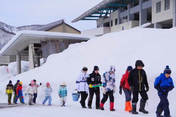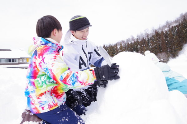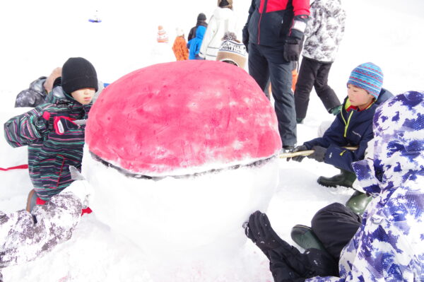 真っ白な銀世界に変わったグラウンドで、児童生徒会がスノーフェスタを企画をしました。 「雪像づくり」では、アイデアを出し合い個性豊かな作品が並びました。グラウンド横の斜面を生かしたコースでの「スノーチューブ滑り」では、その高さと迫力に歓声が上がりました。雪国ならではの、たくましくも楽しい交流のひとときとなりました。
