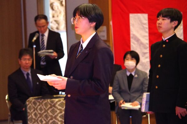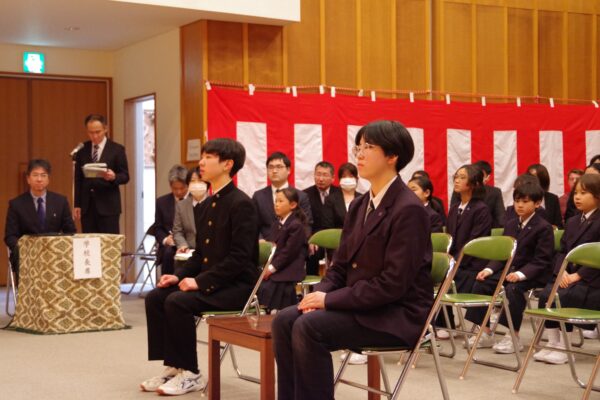 同窓会入会式 3月11日 利賀っ子Diary 2026.03.12 同窓会長をお迎えし、同窓会入会式を行いました。会長から、「同窓会は利賀中学校から受け継がれてきた伝統ある会です。これからその伝統をしっかり引き継いでいってほしい。」という歓迎の言葉がありました。