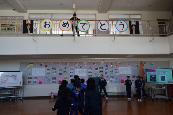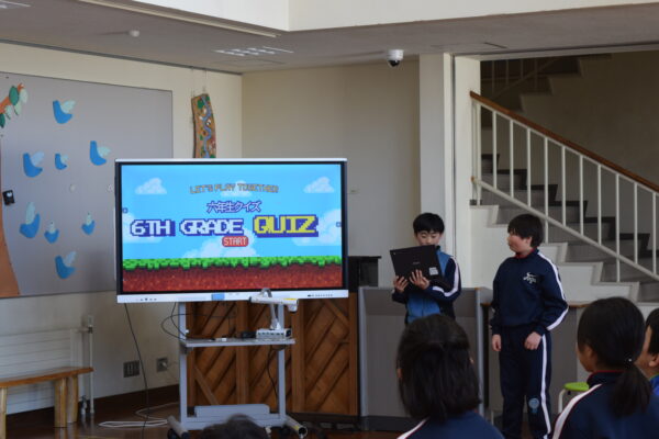 6年生を送る会 3月17日 利賀っ子Diary 2026.03.18 6年生の前期課程修了を祝い、6年生を送る会を行いました。 1・2年生からは「ジェスチャーゲーム」、4年生からは「なんでもバスケット」、5年生からは「クイズ」と「サプライズ動画」の出し物がありました。6年生からは「格付けチェック」の出し物があり、思い出に残る時間となりました。