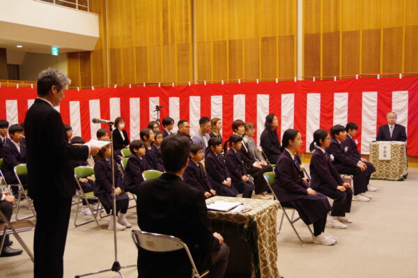 修了証書授与式 3月24日 利賀っ子Diary 2026.03.24 前期課程を修了する6年生に対し、南砺市教育委員会から松本教育長をお迎えして、修了証書授与式を行いました。式では、校長先生から修了生一人一人に、これまでの努力と成長をたたえるあたたかい言葉が贈られました。