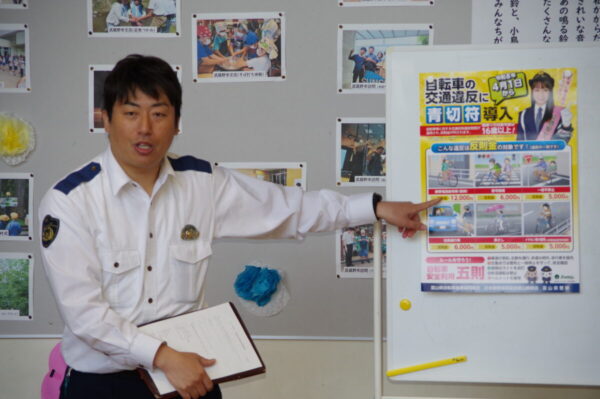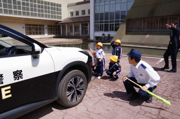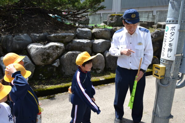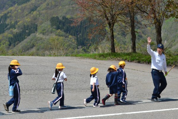 交通安全教室 4月21日 利賀っ子Diary 2026.04.23 利賀駐在所の方にお越しいただき、全校で交通安全について学びました。低学年の児童は、ドライバーからの死角を体験し、「車からは意外と見えにくいんだ」という発見をしました。その後、市民センター前の交差点まで歩いて行き、道路の安全な歩き方や信号機のある交差点での横断のしかたを学びました。3年生以上は、具体的な事故の事例や、新しくなった交通反則通告制度の話を聞き、「自分たちの運転が命に関わる」という緊張感をもって耳を傾けていました。 Post Views: 11