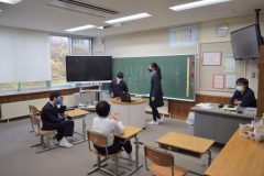 歯科保健教室 利賀っ子Diary 2022.11.282022.11.30 南砺市福光保健センターから2名の歯科衛生士さんを講師にお招きし、1・2年生、5・6年生それぞれ、歯科保健教室を行いました。1・2年生はむし歯の原因と歯みがきの大切さについて、5・6年生は歯肉炎の原因と予防法や、自分の歯に合った歯みがきの仕方について、お話を聞いたり、歯の染め出しをしたりして学習しました。今日、学んだことをこれからの生活の中で生かしていけるといいですね。