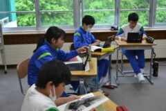 もっと速く回すには・・・(中学年) 利賀っ子Diary 2023.05.30 4年生は理科「電流のはたらき」の単元で、乾電池とモーターをつないで電流の向きや強さについて学習しています。もっと速くモーターを回すにはつなぐ乾電池をふやしたらいいとの予想から、いろいろなつなぎ方を実験しました。「+同士をつないでも動かないね」「本当に速く回っているか比べてみよう」と気付きを共有しながら、モーターが速く回るつなぎ方を見つけていました。 Post Views: 4