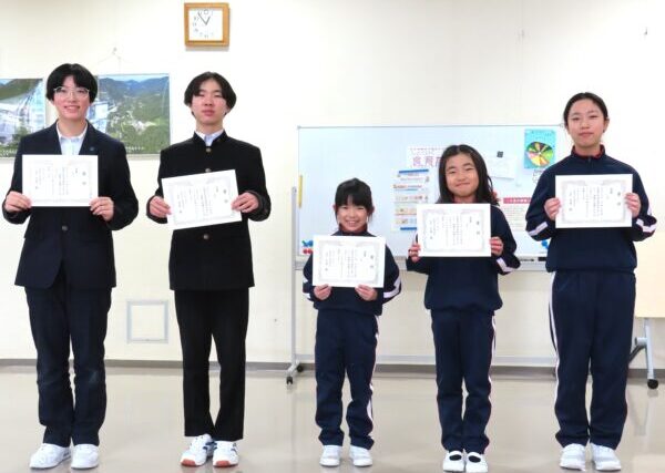 昼の時間に授賞式を行いました。校内書初大会 金賞 1年生 1...
