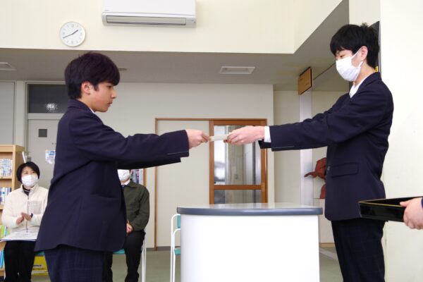 来年度前期の児童生徒会長立会演説会と当選証書授与式を行いまし...