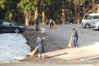 今朝、杉の葉や落ち葉等の清掃に取り組む子どもたちの姿がありま...